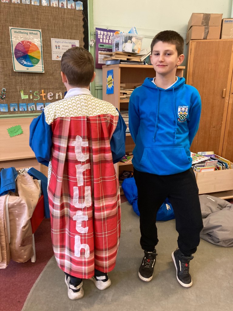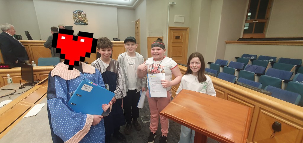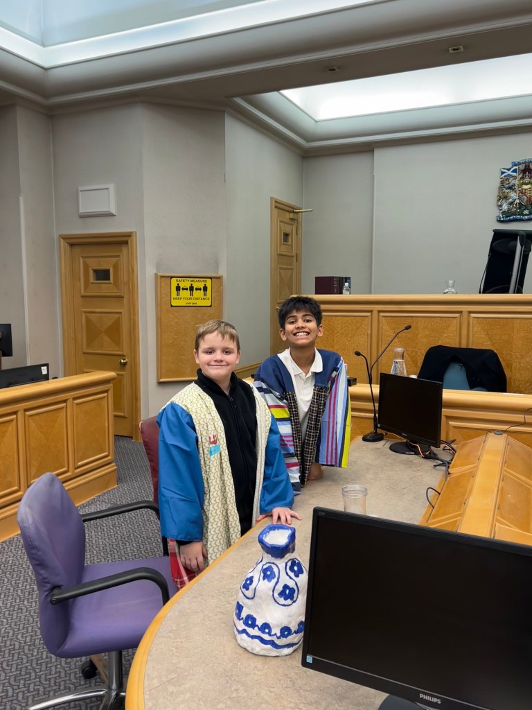 Well done to the P7 and P6/7 classes who took part in the East of Scotland Mock Court Trials at Edinburgh’s Sheriff Court on Chambers Street last month. The pupils had been working on their prosecution and defence cases since September with coaching from Andy, their solicitor-mentor. Alongside the pursuers and defenders teams, there was a team of court gown-makers and exhibit-makers who made photographs, vases and receipts required as evidence for their trials.
