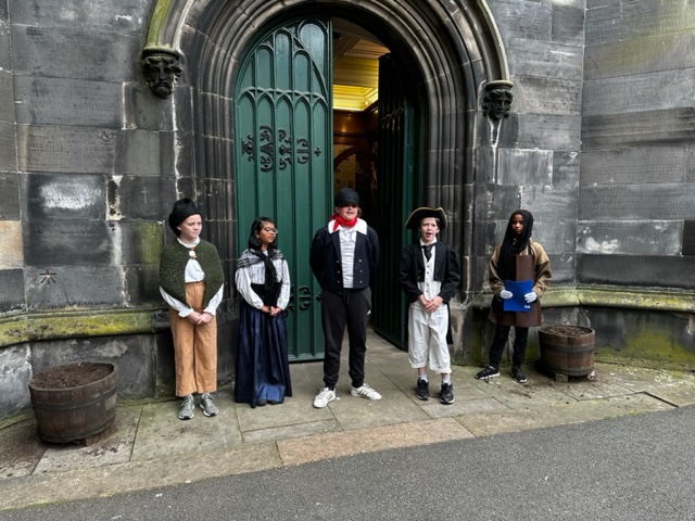 A massive well done to our P6 and P5/6 pupils for successfully achieving status as Junior Tour Guides. This year, pupils gave tours around the historic South Leith Parish Church, which is adjacent to Trinity House Maritime Museum, where the tour guide project normally takes place. Pupils, dressed in period costume, described Leith’s maritime past, the church’s links to Mary of Guise, historic links to the African Slave trade and Leith’s position as a major whaling port many, many years ago. The pupils spoke confidently and knowledgably about the subject matter and impressed their various audiences, not least their families.