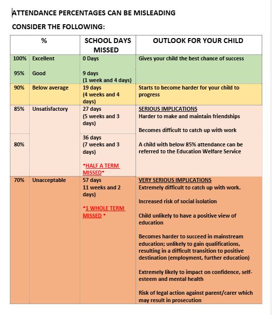 A reminder again how important daily school attendance is for your child’s academic and social development. We know that most children get sick from time-to-time and do have to stay off to get better but at all other times it is imperative that pupils are in school and on time every day. We may be in touch shortly with some parents to find out how we can support their child to improve their attendance or time keeping during this academic year as good attendance links very closely to better learning, better behaviour and improved peer relationships.