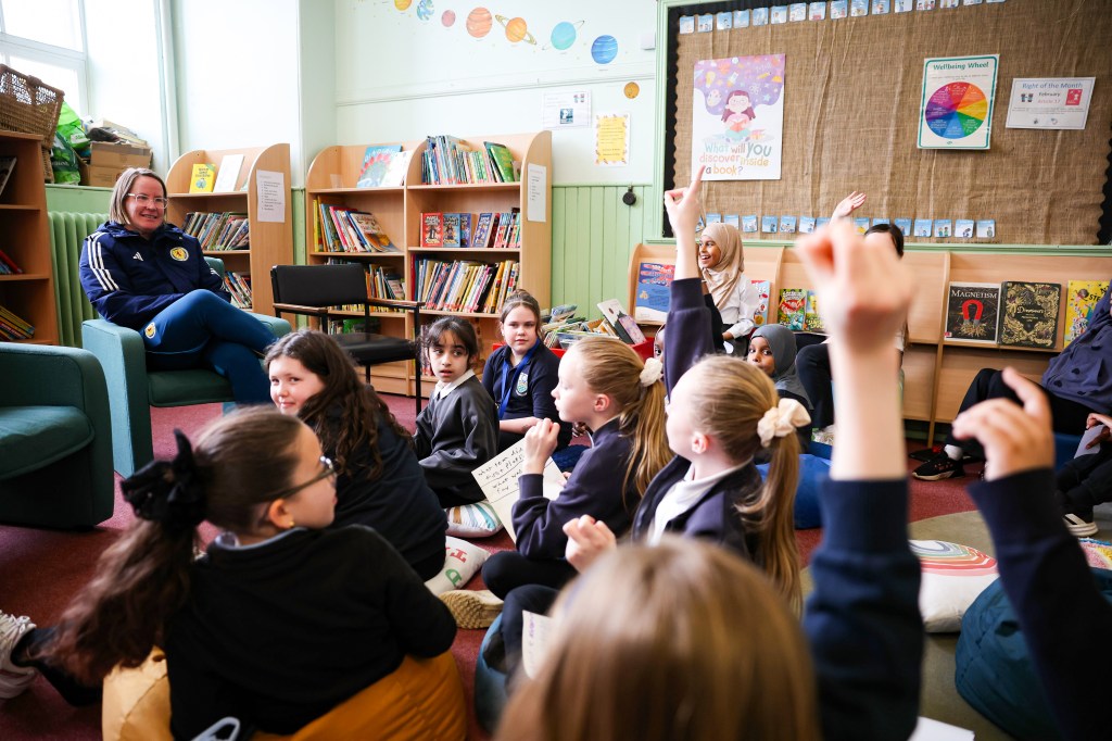 The Manager of the Scotland Women’s Football team, Melissa Andreatta, came to visit the Leith Primary School girls football team last Wednesday in the school’s library. The girls had prepared questions for Melissa about her role as a manager and the role of a professional football player. Melissa was delighted to share her experiences of working within women’s football with the girls and was impressed with their passion for the game.