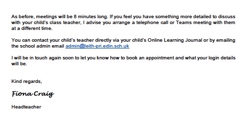 We await to hear further plans about schools returning from the Scottish First Minister in today’s statement in parliament. Parents and carers will be informed as soon as plans for a return have been confirmed with the City of Edinburgh council.