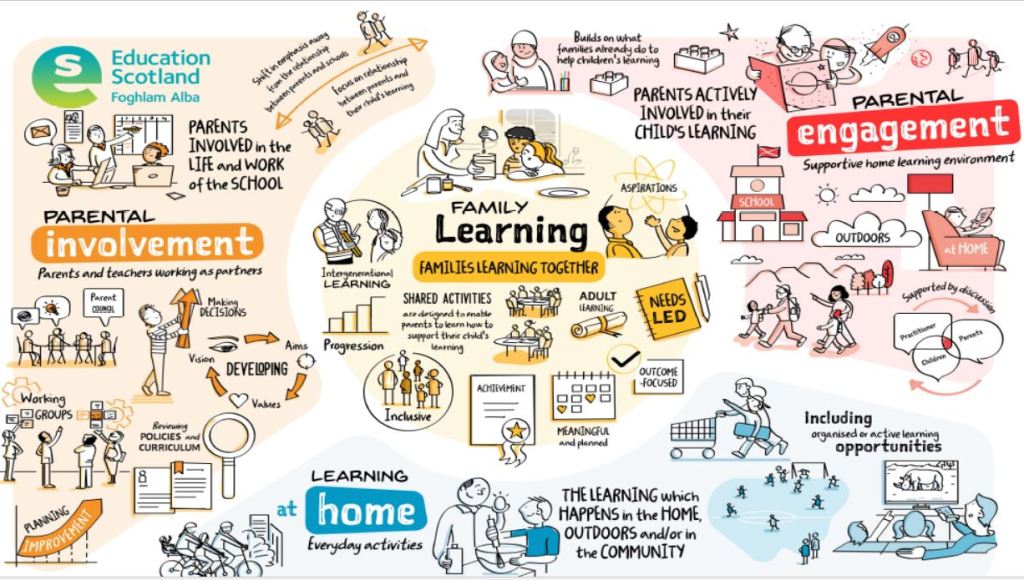 We value the support and engagement of our parents and carers at Leith Primary School. Family Learning incorporates the notions of parental involvement and parental engagement along with the idea of families learning together and home learning.