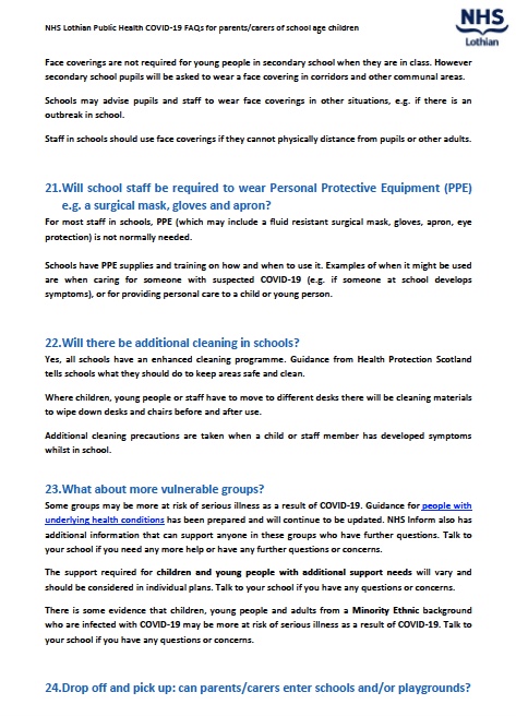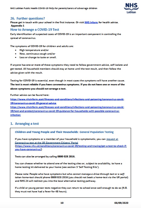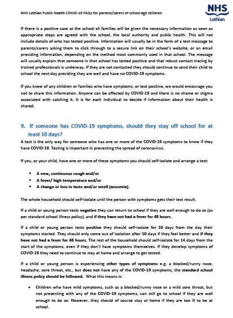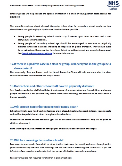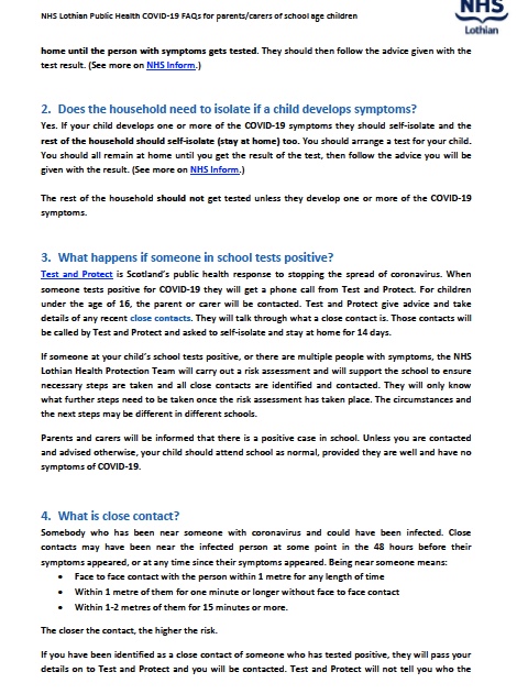 For further information you may find this FAQs usefulhttps://www.nhslothian.scot/Coronavirus/Parents/Schools/Pages/default.aspx